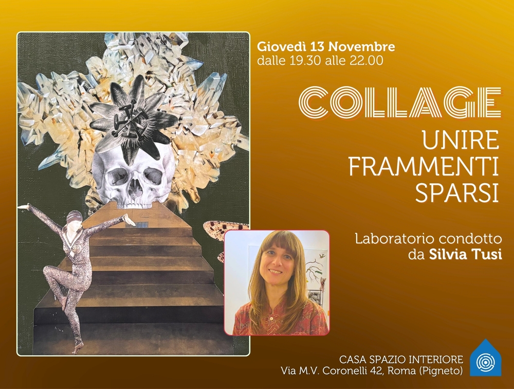 Silvia Tusi, responsabile della libreria Spazio Nagual, utilizza da anni lo strumento del collage per il lavoro su di Sé e per lasciar fluire liberamente la forza creativa e creatrice che risplende in ognuno di noi.
